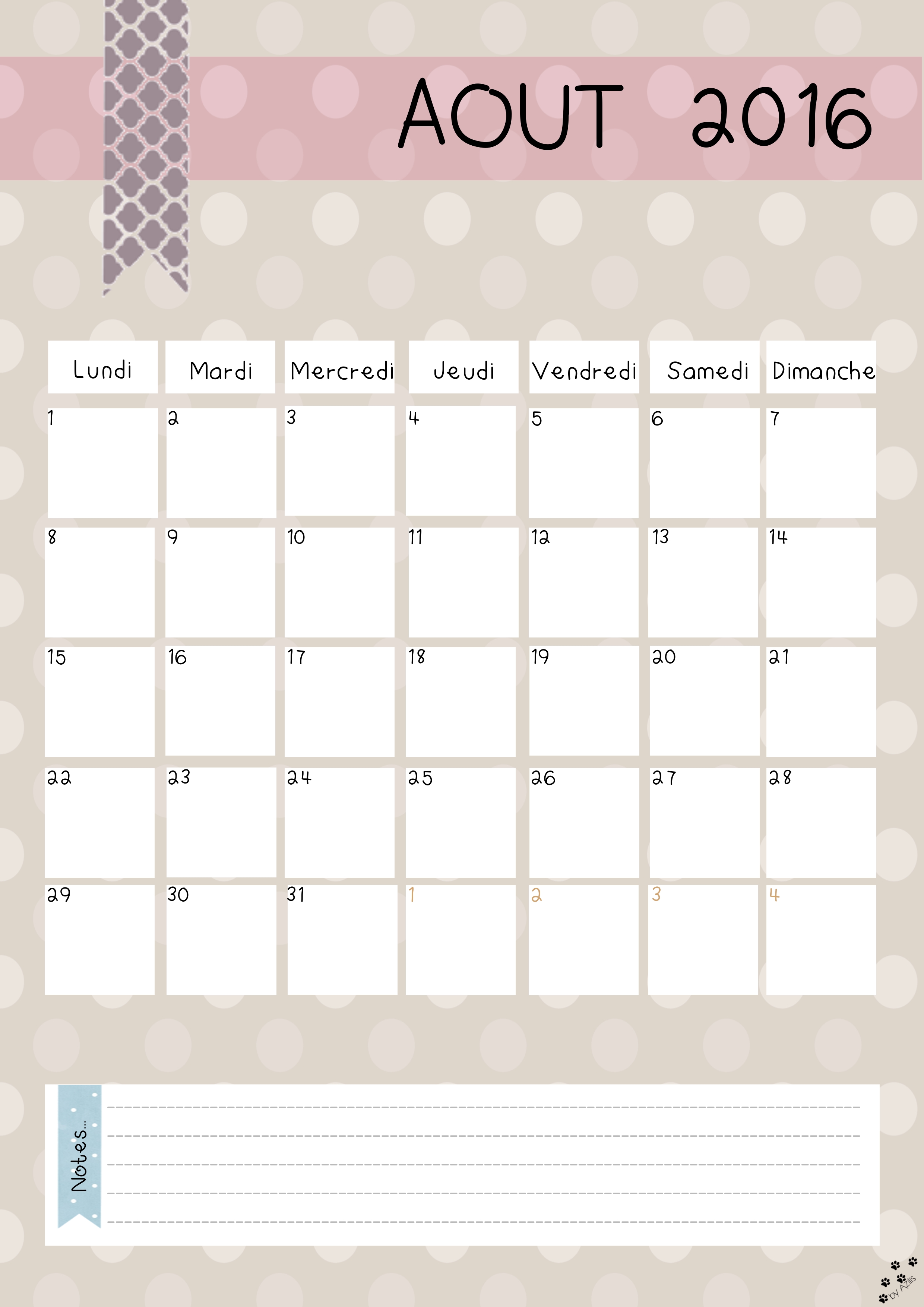 calendrier aout 2016 Publié 14 octobre 2015 à 2480 × 3508 dans Calendrier 2016 (gratuit, à imprimer) ← Précédent