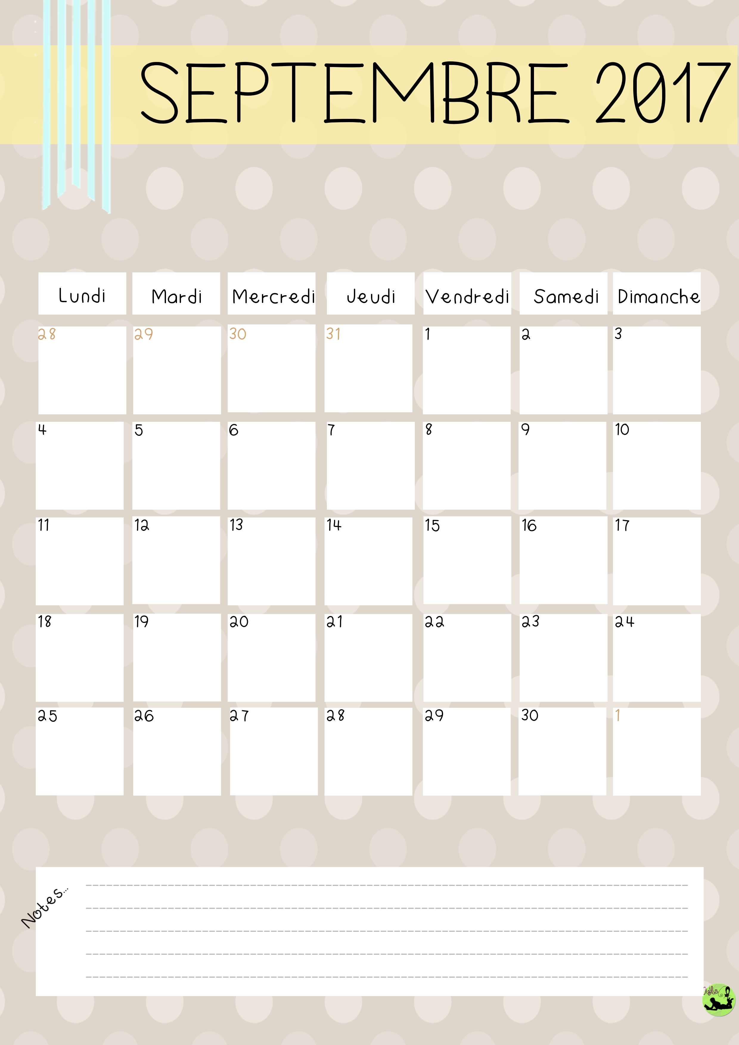 calendrier-septembre-2017 Publié 18 novembre 2016 à 2480 × 3508 dans Calendrier 2017 (gratuit, à imprimer) – Nouvelle version ← Précédent