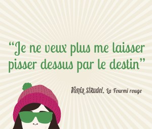 J’ai ri mais j’ai ri avec ce roman! Vania est vraiment exceptionnelle! J’ai adoré son humour, le regard qu’elle porte sur elle-même et sur les autres. J’ai vraiment interagi avec cette histoire : rire, étonnement, colère face à cette ennemie jurée (c’est vraiment une « crevure poufiasse »). Les personnages secondaires ne sont pas en reste : uniques eux aussi, et qui complètent le tableau à merveille!