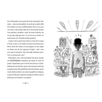 La rentrée est pire que ce qu’elle avait imaginé! Elle réalise que si en CM2 elle était une grande, elle est de nouveau une « petite » dans ce collège. On la montre du doigt, elle se perd dans les dédales de l’établissement. Elle va être l’objet de moquerie. Ce n’est vraiment pas ce qu’elle avait imaginé… Jusqu’à l’arrivée du nouvel élève : Amir. Il vient d’un autre pays. Et il est beau! Le garçon le plus beau qu’elle ait jamais vu! Elle va apprendre à le connaître mais surtout à connaître son histoire.