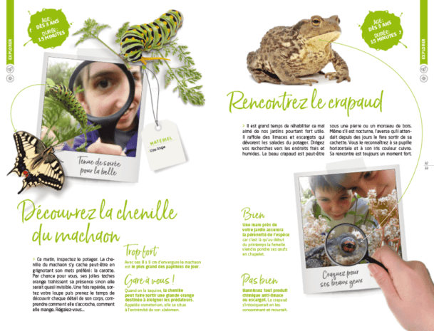 Personnellement, et même si je n’ai pas d’enfants, j’ai envie de tester certaines choses découvertes par le biais de cet ouvrage. Par contre, c’est sûr et certains que je ne testerais pas l’observation des crapauds (beurk!! phobie quand tu nous tiens!!).