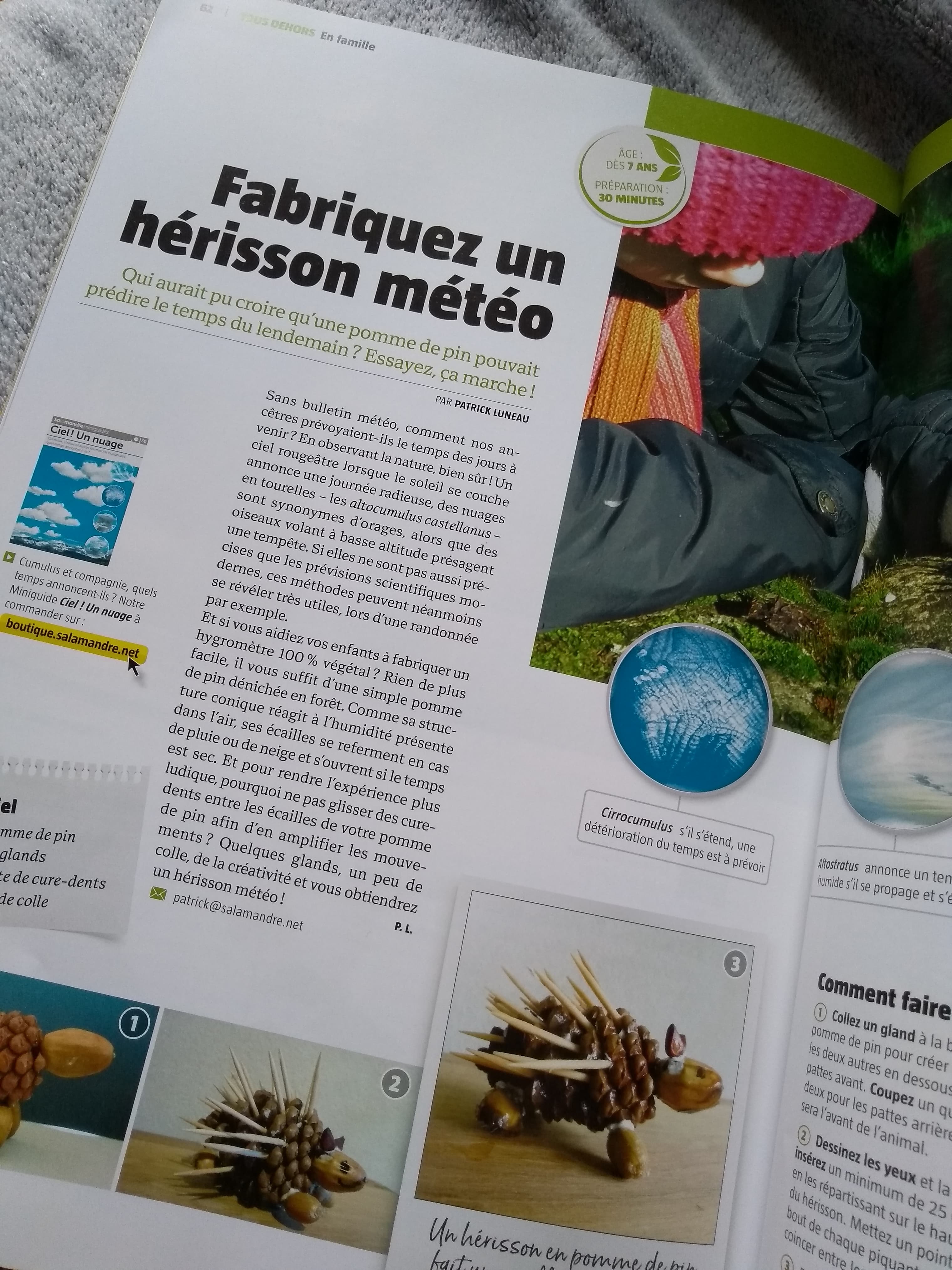 ou encore de chouettes activités à faire en famille comme la fabrication d’un hérisson météorologique ! Que je compte bien tester !
