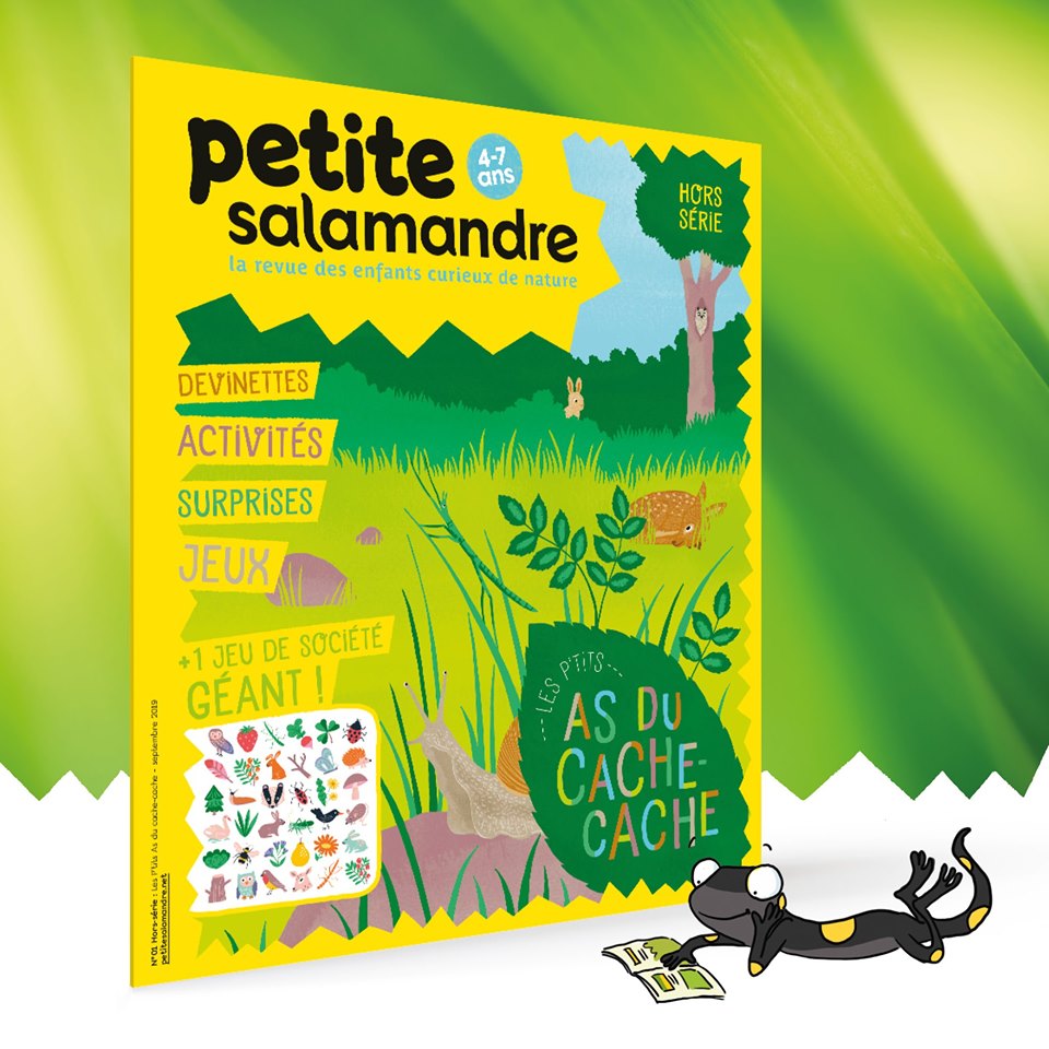 J’ai l’habitude de vous parler de la grande sœur de la famille des revues des éditions La Salamandre (La Salamandre, revue pour les adultes curieux de la nature). Aujourd’hui, je vous parle de la minus :La Petite Salamandre et plus exactement du premier hors-série de cette jolie revue parue ce mois-ci. Un hors série consacré aux As du cache -cache!