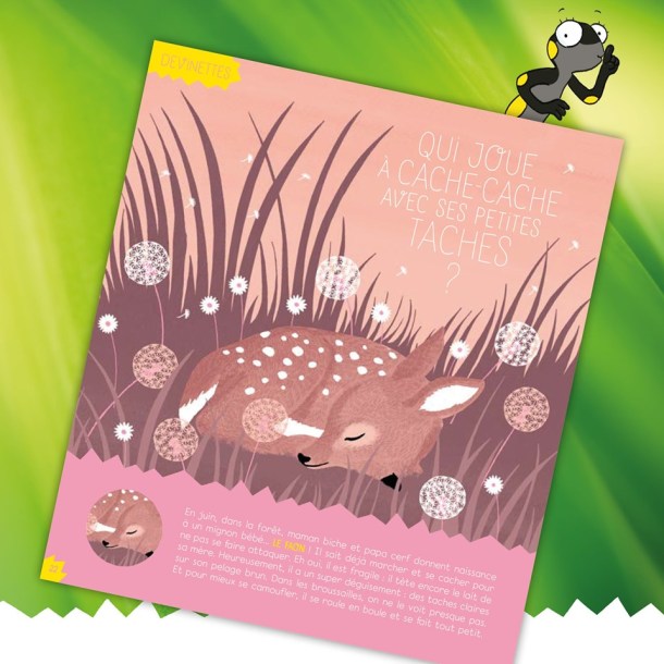 Pour chaque animal, un petit mot sous forme de devinettes pour le présenter, puis on nous propose des activités ludiques en lien avec son camouflage et son milieu de vie.