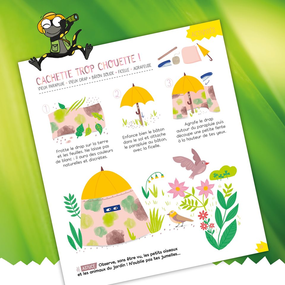 A l’enfant de réaliser des gâteux à la carotte ou des roulés de pizza, des masques de hibou, une marelle land-art originale ou de commencer une nouvelle observation. Il y en a pour toutes les envies de découvertes pour les petits curieux !