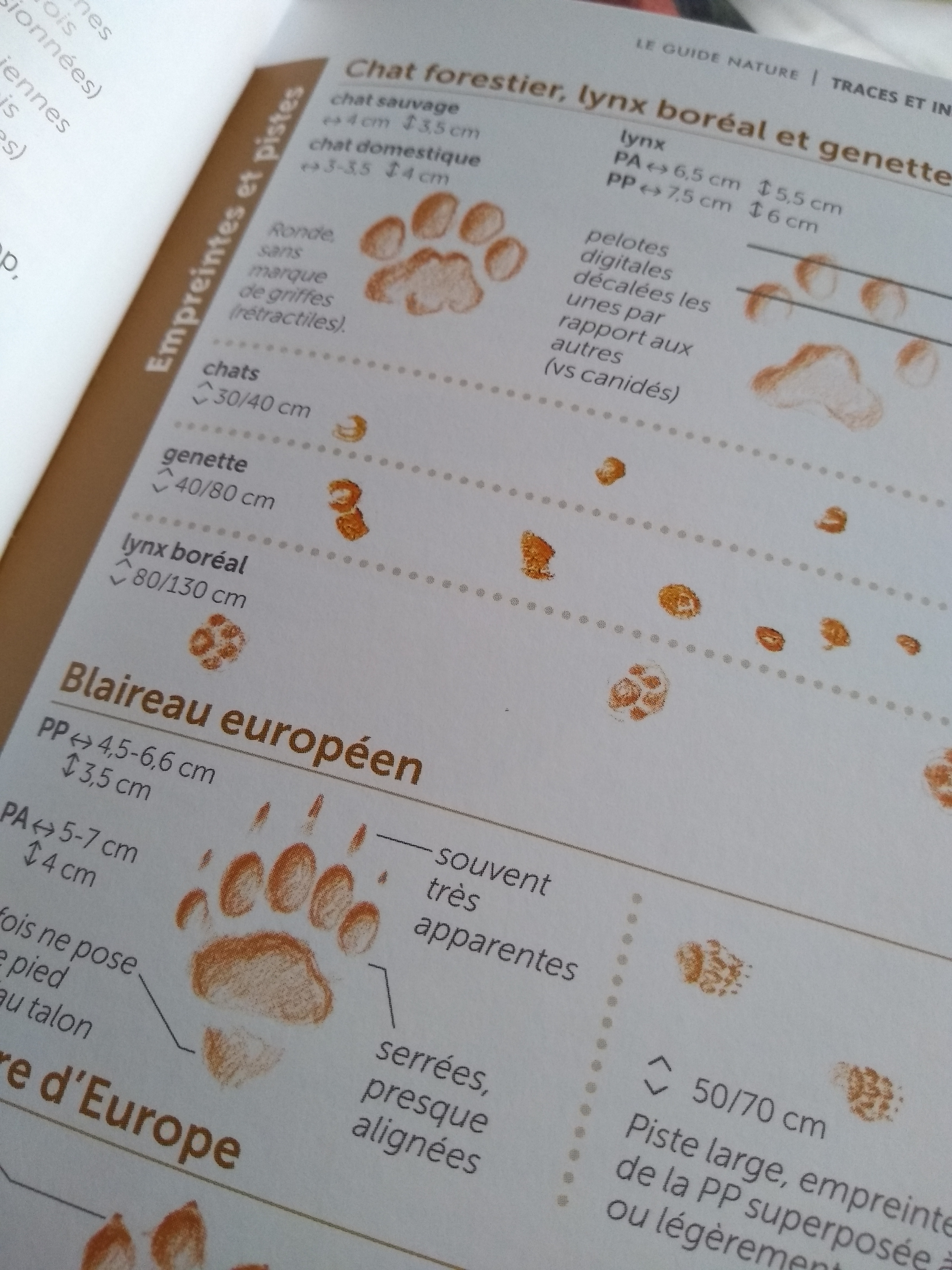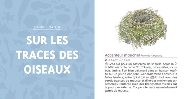 L’ouvrage est ainsi découper en plusieurs thèmes pour s’y retrouver facilement : Pister les mammifères (ongulés, carnivores, petits mammifères, castor), Sur les traces des oiseaux (nids, œufs, plumes, pelotes de rapaces), lire arbres et arbustes (bourgeons, écorces, fruits d’arbustes, fruits d’arbres feuillus, galles) et une dernière Poursuivre l’enquête (en forêt et en bord de mère).