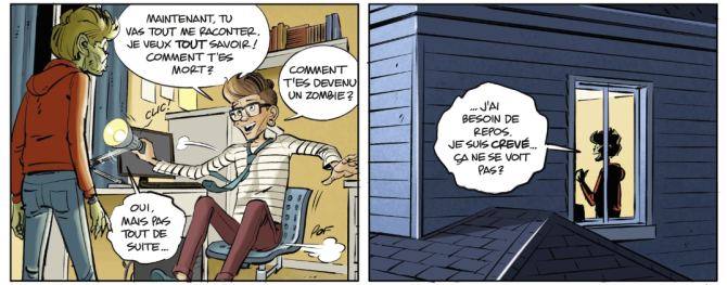 On pourrait s’attendre à une histoire d’horreur vu le thème, mais au final le scénario est plutôt original et drôle. On s’amuse de la situation, tout en s’émouvant. Le point de départ est tragique et on assiste à ses répercussions dans la vie de ses proches. Mais le caractère de Yan-zombie va apporter de la légèreté à l’intrigue. Les illustrations, rondes et plutôt joyeuses, apportent elles-aussi un joli décalage entre le thème de départ et la façon dont les auteurs ont décidé de le traiter. Je suis très curieuse de savoir comment les choses vont évoluer.