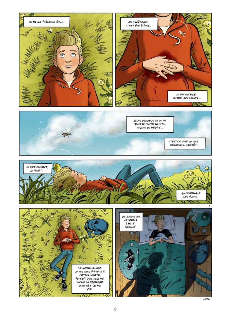Yan Faucher, 13 ans, est un ado comme un autre. À la veille de la sortie des classes, il se sent très bien dans sa peau : il va avoir une petite sœur d’un jour à l’autre et, avec son pote Nico, il est prêt à lancer son grand projet : commencer le tournage de son film de zombis ! Mais alors qu’il se rend à la maternité pour rejoindre toute sa famille et fêter l’heureux événement, il tombe sur une discussion animée entre un dealer et son jeune client. Essayant d’intervenir, il se fait accidentellement poignarder. Il meurt sur le coup. Toute sa famille est anéantie. Mais visiblement, son âme a décidé de ne pas le lâcher. Il se rend alors compte que non seulement il continue à penser, mais il arrive également à bouger. Grâce au clairon que son petit frère a glissé dans son cercueil, il arrive à attirer l’attention de son copain Nico qui décide de l’exhumer. Arrêté par la police, Nico n’a pas le temps de libérer son ami, mais Yan parvient à sortir de son tombeau. Avec l’aide de Nico et Alice, il va mener une double quête : retrouver son assassin et reconstruire sa famille en pleine décomposition depuis son décès.