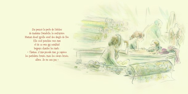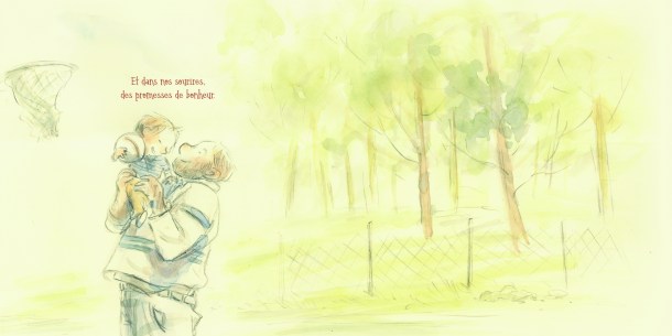 Et les illustrations de Claude K. Dubois (Puni Cagibi, Les Mots doux…) ajoutent à cette atmosphère douce, poétique avec des aquarelles presque en filigrane et qui transmettent bien la fragilité des émotions.