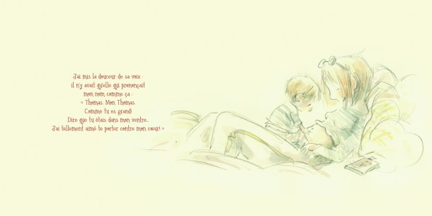 C’est avec beaucoup de tendresse et de douceur que l’autrice Martine Arpin parle de la mort mais surtout du manque que l’on peut éprouver lors d’une perte d’une personne proche. L’émotion est d’autant plus fort qu’elle se place au niveau de l’enfant. Dans les albums abordant ce thème, on parle souvent de la perte d’un grand-parent, d’un animal, mais je crois bien que c’est le premier que je lis parlant de la perte d’un parent (et donc ici d’une mère). Je trouve ça bien d’aborder aussi ce thème de cette façon, qui apportera sans nul doute un soutien, une réponse pour l’enfant dans cette situation.