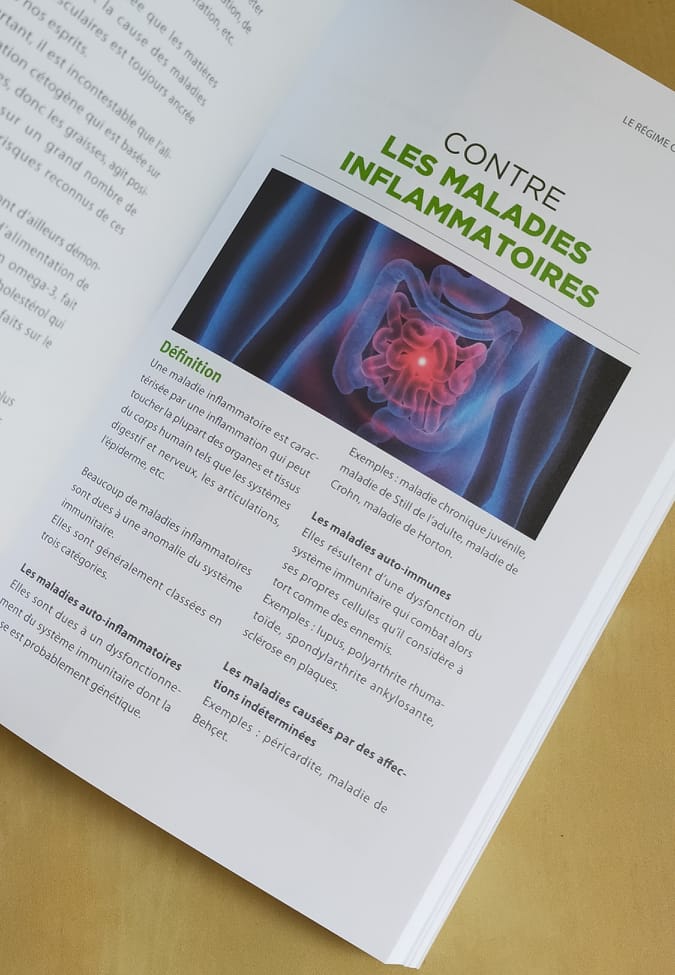 Un chapitre est consacré aux résultats prouvés scientifiquement que peut avoir cette alimentation sur notre santé en cas de diabète, d’épilepsie, d’obésité, de maladies inflammatoires (ce qui m’intéresse au plus haut point donc!), entre autres, et sur les maladies dont on étudie encore les bienfaits de cette alimentation (phase expérimentale).