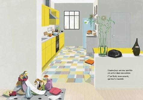 Il y a eu l’histoire du Mange-doudou dans la chambre, de la nuit terrible à l’école, de l’accident du bain et dans ce nouvel opus, le truc terrible s’est passé dans la cuisine !