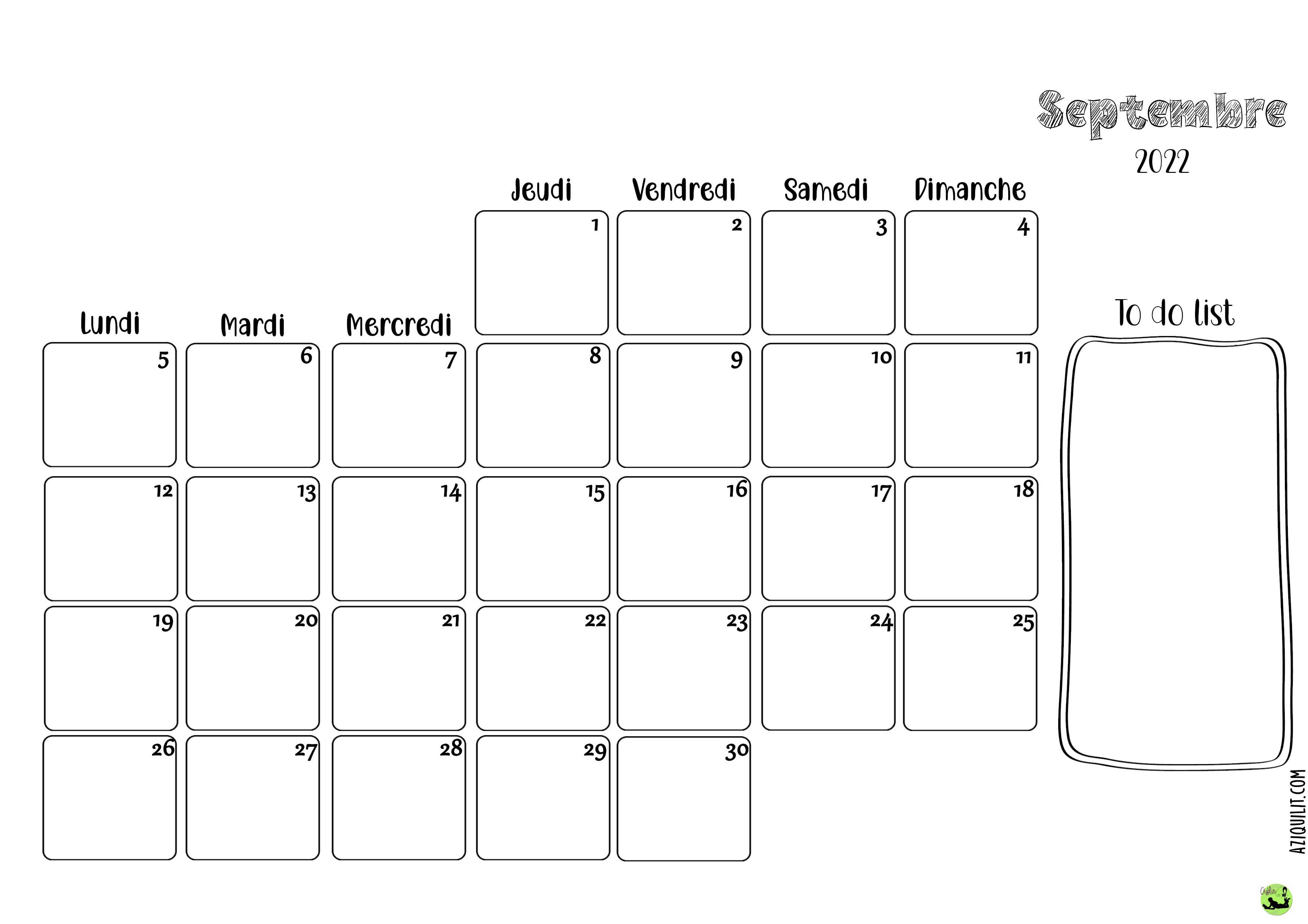 septembre2022 Publié 1 octobre 2021 à 3508 × 2480 dans Calendrier 2021-2022 (gratuit, à imprimer) ← Précédent Suivant →