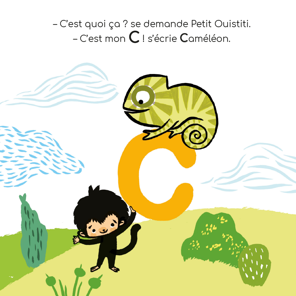 Toutes les lettres de l’alphabet se sont envolées. Avec l’aide de Grand Ours Blanc, Petit Ouistiti a décidé de les rapporter aux animaux. – Abracadabra, monsieur Alligator, voilà ton A ! – Et toi, Bébé Babouin, tu veux un B ? En voilà un ! C’est en suivant les aventures de Petit Ouistiti et de ami Grand Ours Blanc que les enfants vont découvrir les lettres – et se les approprier d’autant mieux qu’elles seront associées à une histoire drôle et tendre à la fois.