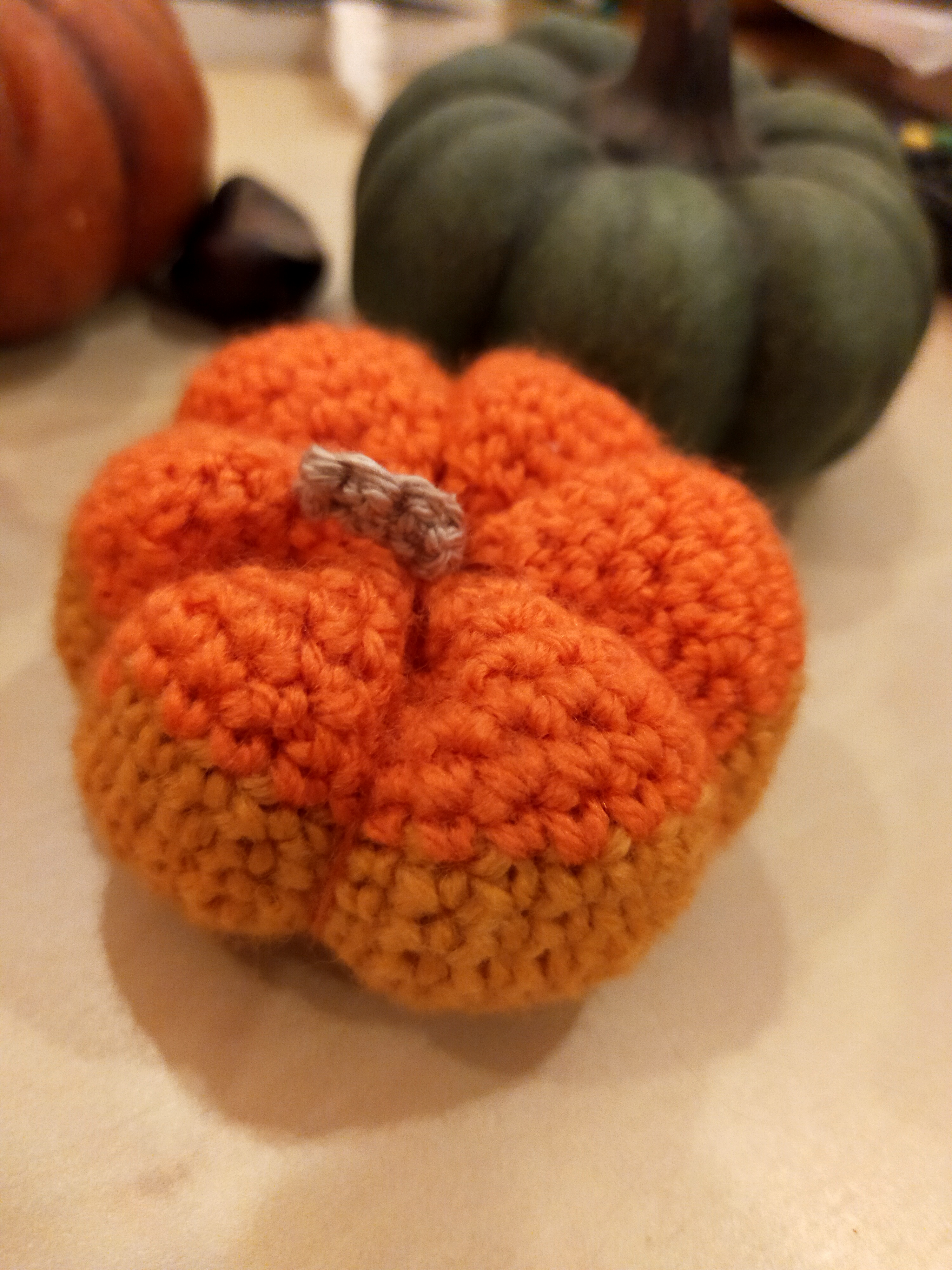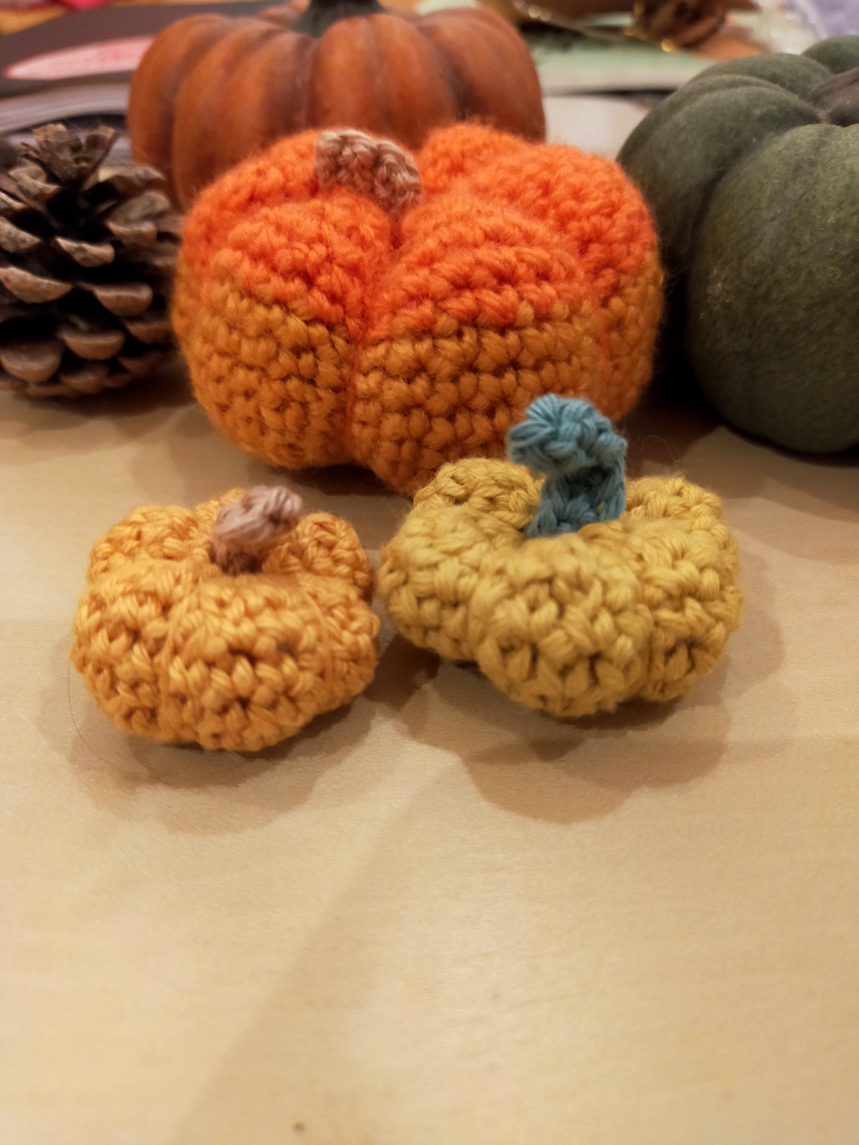 Puis, évidemment, des citrouilles d’après les modèles de Caro tricote (le grand modèle et le petit modèle)