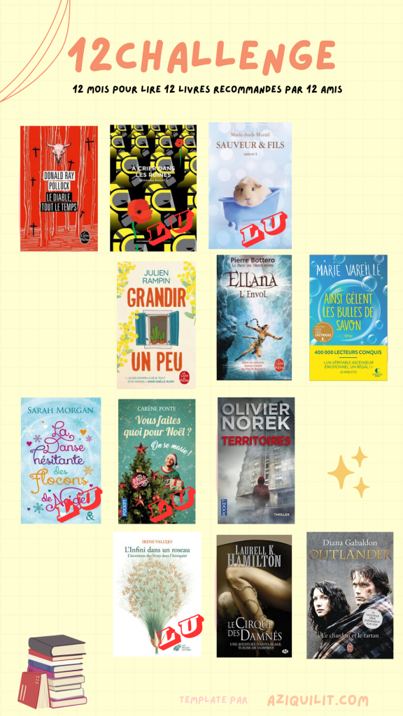 L’année dernière, j’ai tenté le 12 challenge. Il s’agissait de proposer à mes Instaamis de choisir douze titres que je devrais lire cette année. Histoire de faire baisser ma PAL, je leur ai demandé de choisir dans cette dernière !
