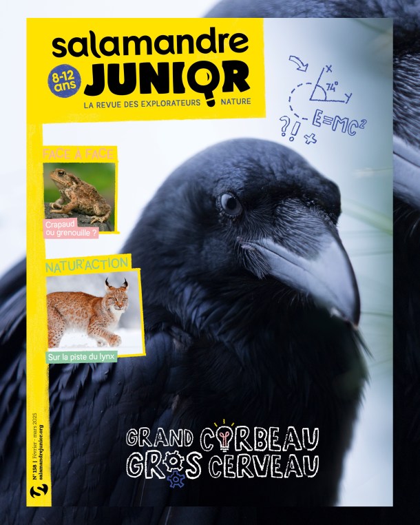 Accrochez-vous, jeunes explorateurs de la nature ! Le nouveau numéro de Salamandre Junior est arrivé, et il va vous faire tourner la tête ! Ce mois-ci, on part à la rencontre d’un oiseau aussi intelligent que mystérieux : le grand corbeau.