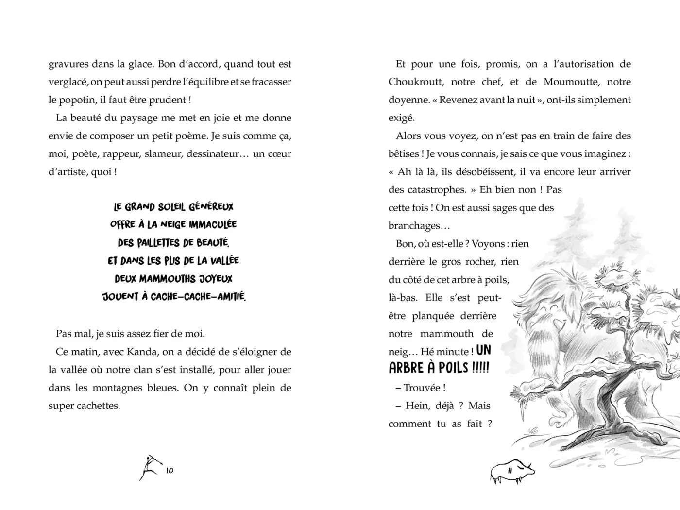 Et aux illustrations, on retrouve aussi le coup de crayon de Bastien Quignon qui est un parfait écho à l’humour du texte et qui donne vie à nos mammouths préférés.