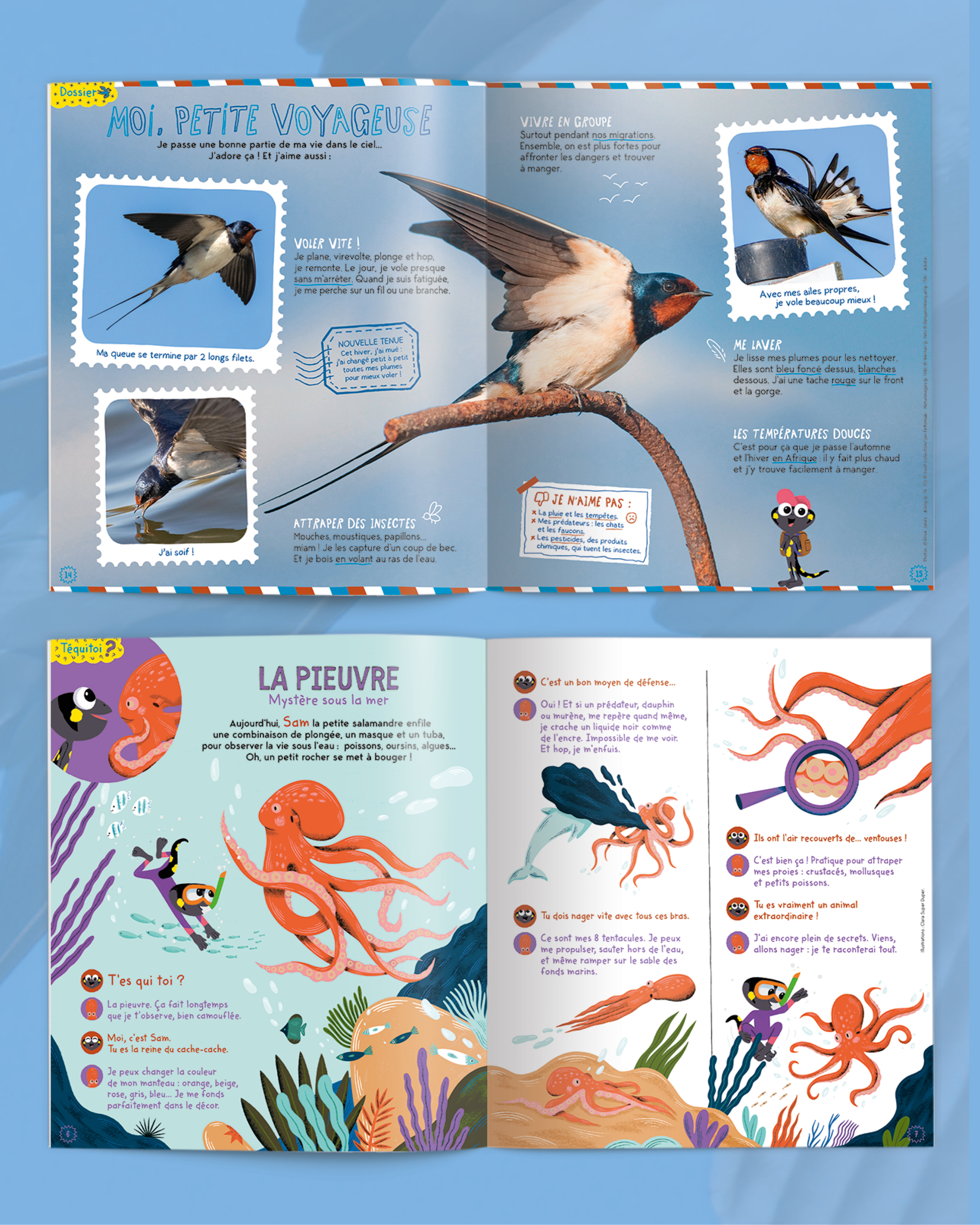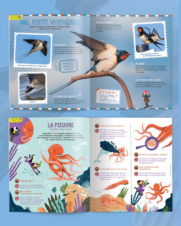 « Coucou, moi c’est Hirondelle ! » nous dit-elle, nous entraînant dans son incroyable périple entre l’Afrique et l’Europe. Un voyage plein de dangers, mais aussi de merveilles, que les enfants découvriront au fil des pages de ce magazine toujours aussi captivant.