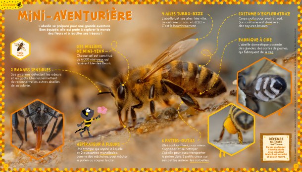 Le magazine propose aussi un poster avec une superbe photo d’abeille et un grand coloriage pour découvrir les animaux musiciens, ainsi que des jeux, une BD, un concours de dessins, des questions insolites et des témoignages.
