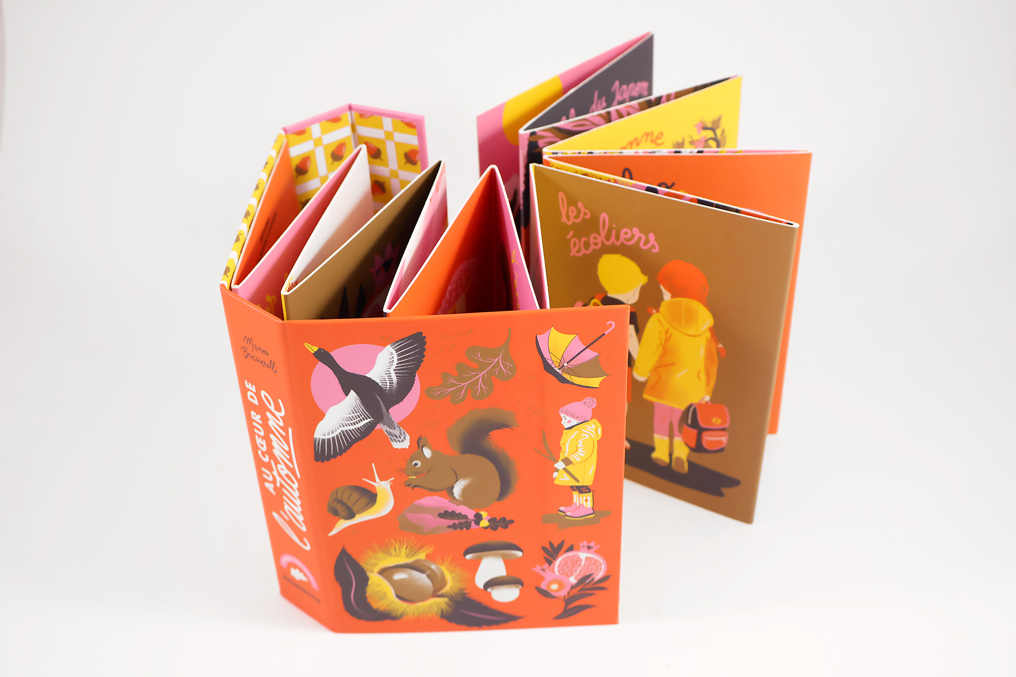 On ouvre, et déjà le vent souffle dans les pages. Les feuilles rousses virevoltent, les champignons se dressent au pied des arbres, les bottes résonnent dans les flaques. Chaque pli du leporello est une porte ouverte sur les trésors d’octobre et de novembre, sur les éclats dorés qui illuminent les jours plus courts.