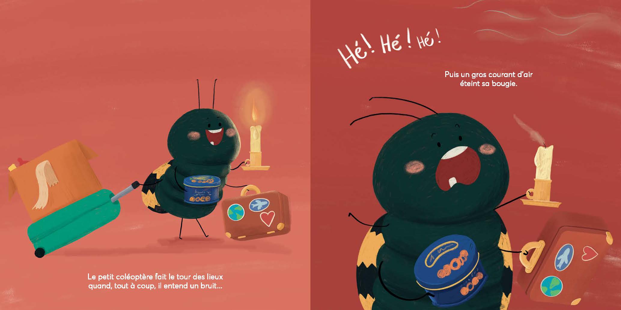 Entre bruits étranges, vent et infiltrations d’eau, Koffi est bien forcé de se demander : mais où a-t-il donc atterri pour que sa maison idéale soit si… surprenante? C’est là que réside tout le sel de cet album : le lecteur, intrigué par les mésaventures du coléoptère, découvrira avec un sourire l’incroyable secret de cette « curieuse maison ».