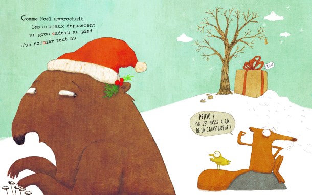 C’est à nouveau un régal d’observer le décalage hilarant entre le texte de Robear et les remarques acerbes et désabusées (et nécessaires) de l’écureuil. C’est à la foi drôle et intelligent ! Cet album joue sur les paronymies et l’importance de la précision des mots pour se faire comprendre, et c’est un excellent outil pour les plus grands qui commencent à saisir ces subtilités de la langue, tout en faisant rire les plus petits avec des situations farfelues.