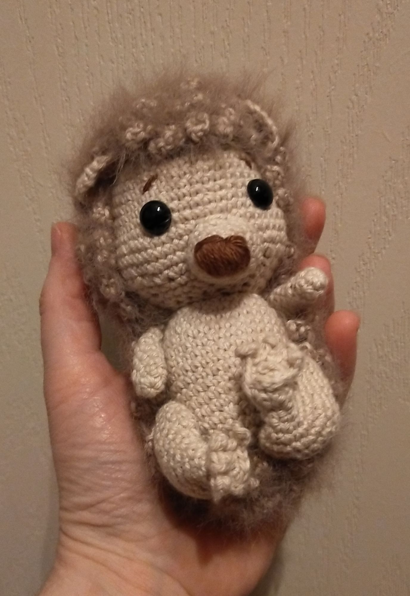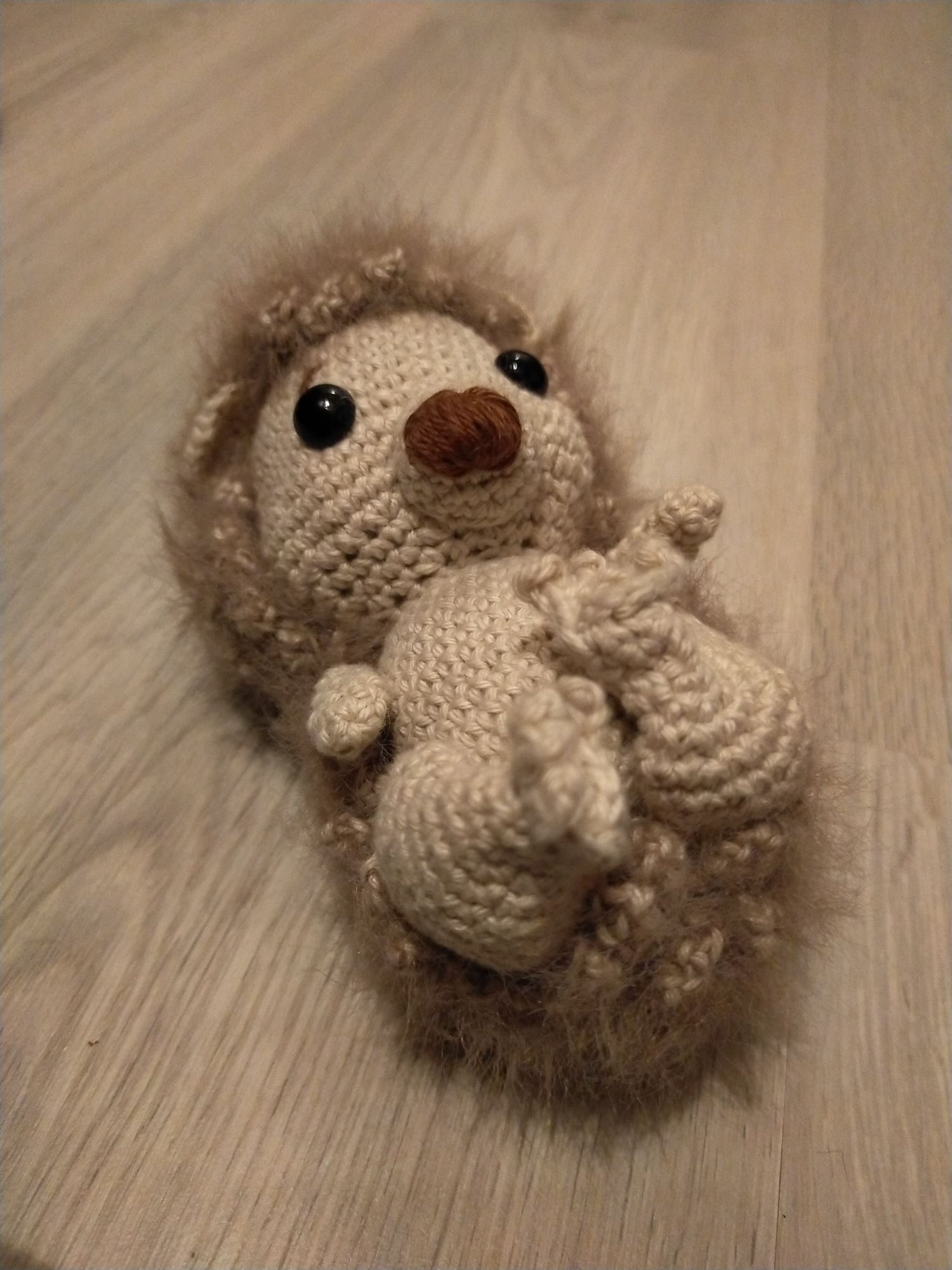Et voilà un nouvel amigurumi : un trop choupinou hérisson! J’ai craqué sur le modèle trouvé sur amigurumibox : j’ai fait à ma sauce pour le choix des couleurs et j’ai choisi de crocheter en double fil pour réaliser les « piquants » qui sont ici tout doux ! Pour les fils j’ai utilisé un coton Drops You 7 Uni colour (colour 35 : blé),