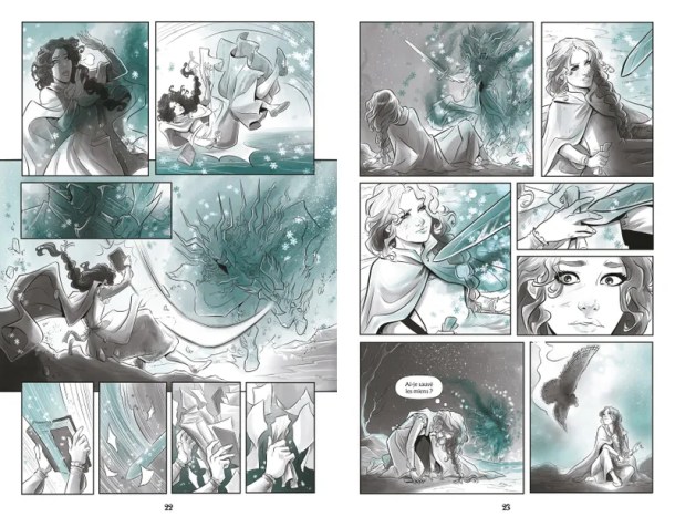 Ayant lu les quatre premiers tomes de la saga, je n’ai pas été perdue. Mais je me suis souvent demandé si une personne découvrant La Passeuse de Mots uniquement par cette bande dessinée ne risquait pas de se sentir un peu larguée. Les enjeux, la magie, les relations entre les personnages manquent parfois d’explications et de respiration.