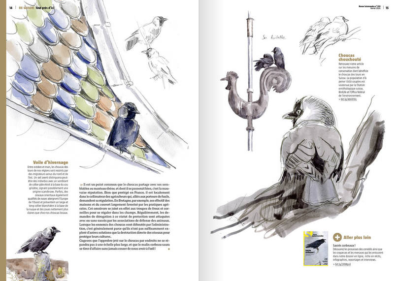 Au fil des pages, la nature se dévoile avec la délicatesse d’un souffle. Les choucas au regard vif et les gypaètes discrets croisent la route du lecteur comme autant de présences complices. Tout semble respirer, dialoguer, témoigner d’un équilibre fragile et d’une intelligence naturelle que la revue célèbre sans emphase. Il y a dans ces textes une attention rare, une volonté de comprendre plutôt que de conquérir.