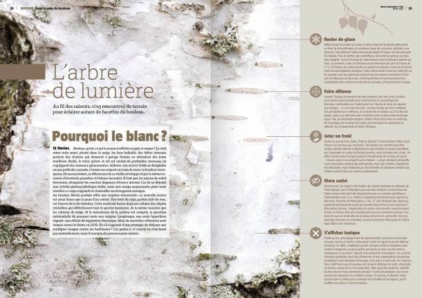 L’article principal du dossier prend le lecteur par la main, l’invite à s’approcher du tronc, à observer les reflets du soleil sur la peau de l’arbre, à comprendre ce blanc si singulier qui le fait scintiller même lorsque tout s’endort. L’écriture, à la fois précise et poétique, rappelle combien la revue sait conjuguer rigueur scientifique et sensibilité. On en ressort avec le sentiment d’avoir pénétré, non pas seulement la vie d’un arbre, mais une manière d’être au monde.