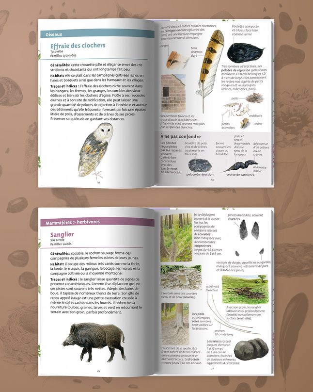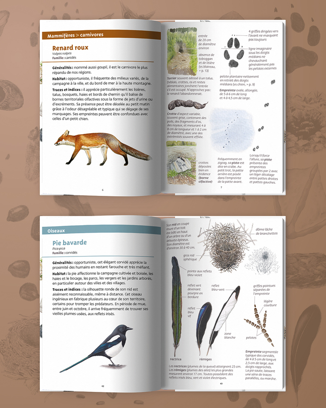 J’ai adoré cette approche presque ludique, qui transforme chaque promenade en véritable jeu de piste. Que l’on soit en forêt, dans un jardin ou même en ville, on réalise vite que la nature laisse des signatures partout — encore faut-il savoir les lire. Ce guide donne justement les clés pour comprendre ces indices : empreintes, crottes, restes de repas, terriers… tout est expliqué de manière simple et accessible, sans jamais être simpliste.