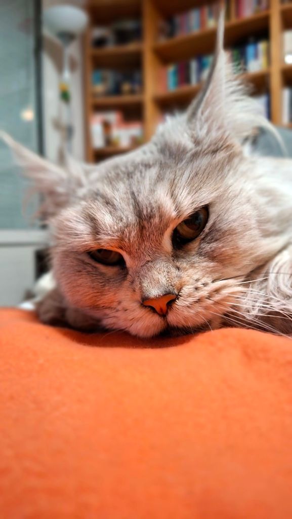 Après quelques heures de méfiance, de regards craintifs et interrogateurs, elle me fait de gros câlins et a trouvé sa place sur le canapé.